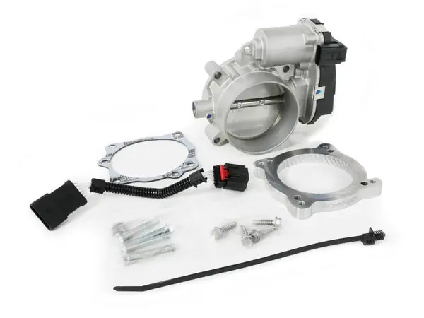 This aFe POWER 80mm Throttle Body and adapter kit improves engine air flow over the stock 74mm throttle body. The extra air flow will increase horsepower and throttle response. Performance gains will be more noticeable as more upgrades are added to the vehicle. All adapters are constructed from 6061-T6 billet aluminum and are precision machined for light weight, high strength, and perfect fit and finish. The Serrated/Swirl combination design creates intake turbulence in the combustion chamber which breaks up the fuel creating a more complete combustion cycle increasing horsepower, torque and improving throttle response. This aFe POWER 80mm throttle body kit uses all factory mounting locations providing stability and a hassle-free installation. All needed hardware is included with the kit. It is recommended to install this throttle body kit with an aFe cold air intake. A new larger coupler at the throttle body is recommended for easier installation (coupler I.D. of 3.50″ or 89mm at the throttle body).