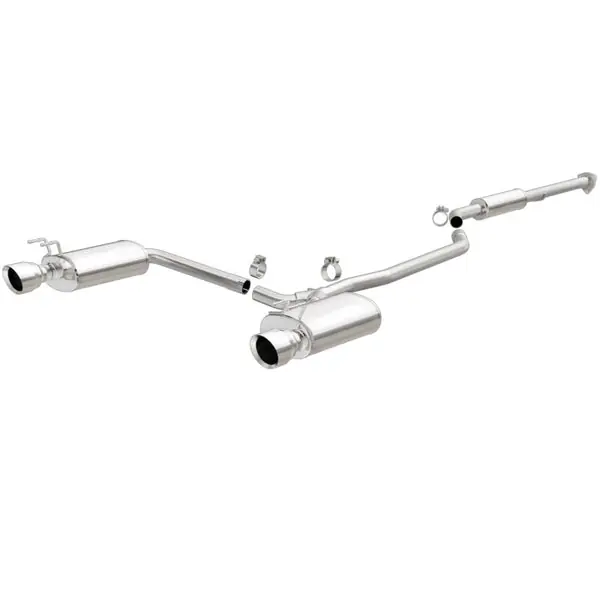 The MagnaFlow 2013-2017 Honda Accord Street Series Cat-Back Performance Exhaust System 19181 brings out the personality of your 3.5L 2013-2017 Honda Accord with our signature resonant, powerful engine tone and dyno-proven performance. Thanks to its fast-flowing, mandrel bent 2.25in. main piping and 3 Straight-Through mufflers ending in a Dual Split Rear exit with 4.5in. Polished Welded-On Double Wall Angle Cut Folded Edge tips, this Honda Accord exhaust kit has the performance chops to match its sporty sound and appearance. Upgrade your ride to the next level with an exhaust that has the pipes to put other Honda Accord’s to shame. With this system your vehicle will be producing Moderate exterior and Mild interior sound levels while leaving other cars and trucks feeling envious at every stoplight. Exhaust kit 19181 features a cat-back layout that replaces your ride’s stock exhaust components from near the catalytic converter on back. Extensive 3D scanning during development has resulted in a direct-fit design that you can easily install yourself. 19181 is produced using CNC precision robotic manufacturing techniques and is backed by MagnaFlow’s 1-year limited finish warranty and limited lifetime construction warranty.