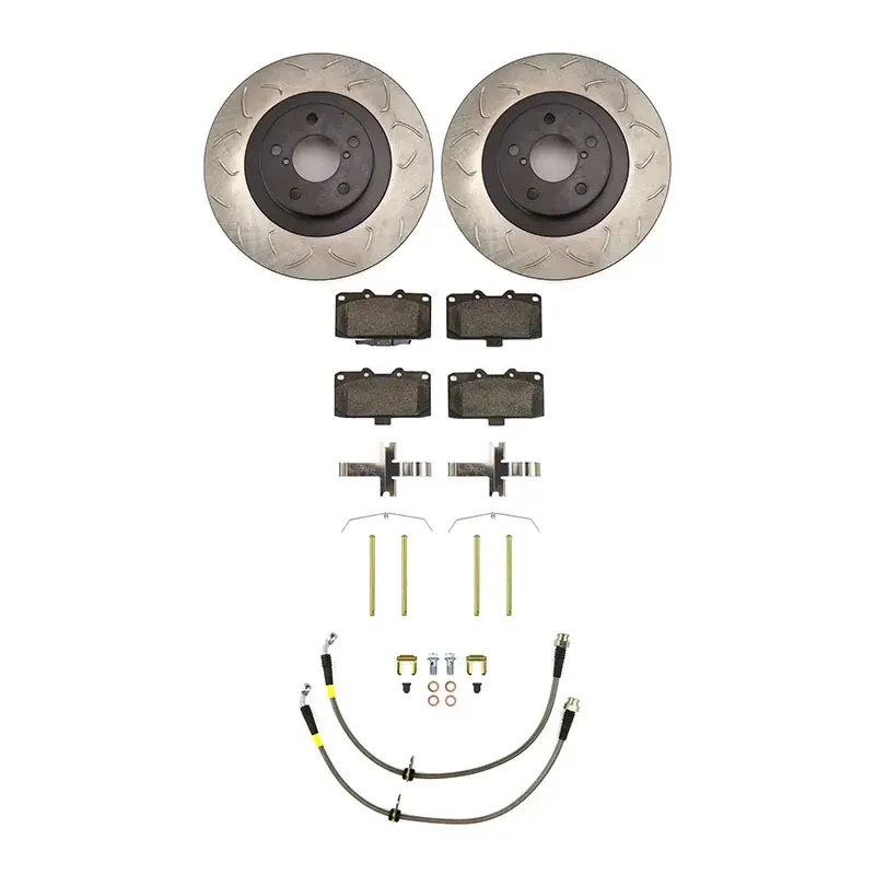 This kit includes new rotors, brake pads, and stainless steel brake lines to improve the braking performance of your vehicle.