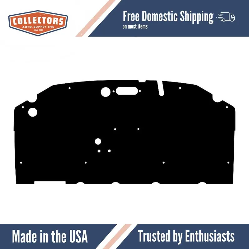 This insulation mounts to the firewall to block engine heat, noise, and vibration from entering the cabin.