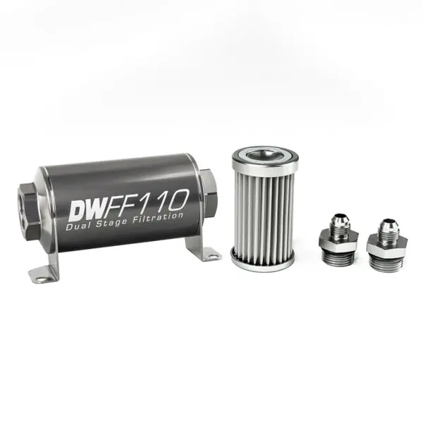 DeatschWerks Stainless Steel 6AN 5 Micron Universal Inline Fuel Filter Housing Kit (110mm) Buy Online