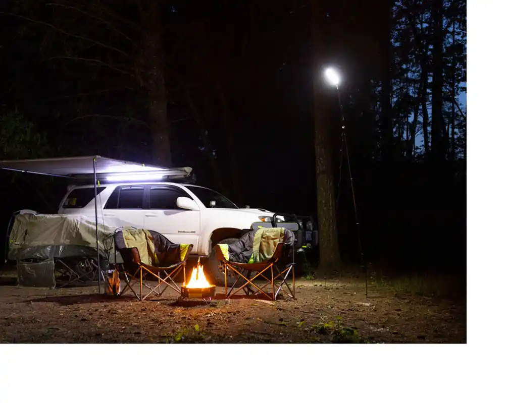 Featuring waterproof connections to the light panel, the area light can be used in most weather conditions. The wireless remote allows full control from the comfort of a camp chair.