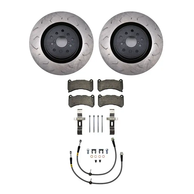 This kit includes new rotors, brake pads, and stainless steel brake lines to improve the braking performance of your vehicle.