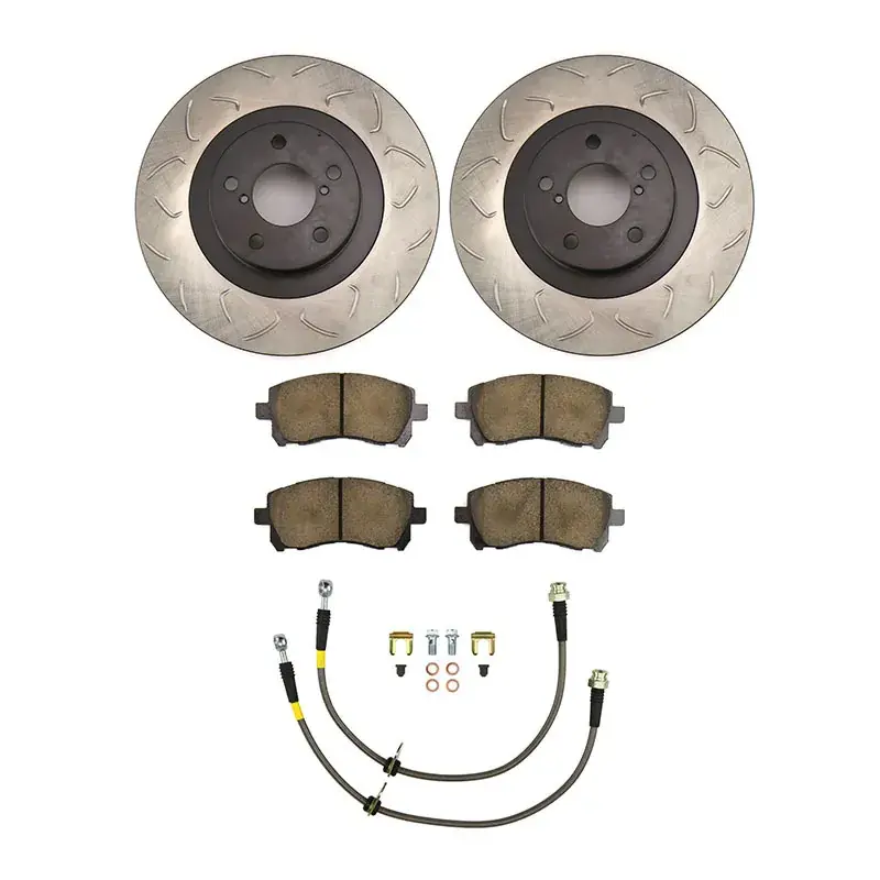 This kit includes new rotors, brake pads, and stainless steel brake lines to improve the braking performance of your vehicle.