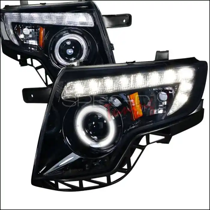 Features: - Glossy black housing smoked lens halo projector headlights with LED drl