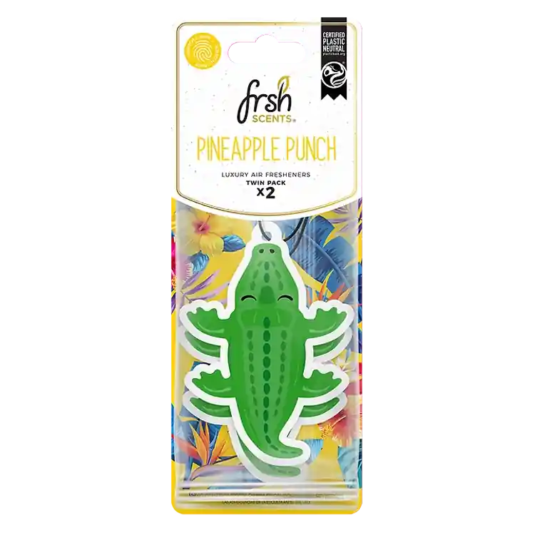 Spread your summer vacay vibes with FRSH Scents Pineapple Punch Paper Air Freshener! With our exclusive Vacation Character Croc, you can count on a world-class, authentic scent to fill your space and spread summer vacay vibes to make your space a non-stop party!
