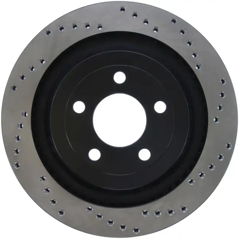 StopTech Drilled Sport Rotors are 1-piece direct replacement brake discs for factory brake systems and stock calipers that look great behind your wheels – and offer significantly improved braking performance. The unique cross-drilling aids with heat and brake dust dispersal; prevents glazing of the pads; adds bite and improves wet and dry braking performance. Built to last; the black e-coating provides protection from corrosion and the high carbon metallurgy (in most applications) offers quieter operation; better crack resistance and increased performance.