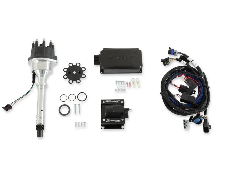 • Complete Ignition system in a box, including: HyperSpark Ignition Box, HyperSpark Ignition Coil, HyperSpark Distributor (for your application), and a plug and play main harness