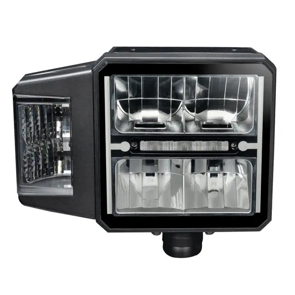 This multifunction headlight features LED low beam, high beam, turn signal indicator, daytime running light. It also features patented heating technology with high-precision reflector facing technology. Designed for the harshest environments in North America and Northern Europe, this light is durable enough for any condition where a reliable lighting solution is needed. Equip your snowplow or other vehicles with the most advanced LED heated headlight to provide precision lighting and prevent any snow or ice accumulation. The de-icing feature eliminates the worry of poor lighting performance and allows for the best functioning illumination when it matters most. Providing better visibility in harsh environments creates a much safer and more enjoyable working environment. This heated-lens headlight is constructed with stainless steel components that are anti-corrosive for long-lasting function. Included under/over voltage and reverse polarity protection ensures a durable and reliable light every time. The modular turn signal indicator can be positioned on top or on either side of the lamp. This allows this lamp to work in almost any application. Heater Function: The heating function activates automatically when the headlight is turned on and the ambient temperature is below freezing. The heating function is indicated by a yellow LED which illuminates when the heating function is active. When the temperature of the front lens cover reaches 100 the heating function automatically shuts off.