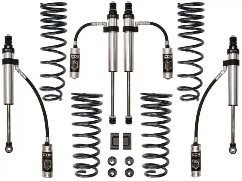 After an in-depth R&D process, ICON engineers have developed a 3†suspension system for the 80 Series that is aimed to improve on-road handling characteristics while also maximizing the Land Cruiser’s off-road potential. This Stage 3 system includes ICON-designed dual rate coil springs, caster correction bushings, sway bar relocation components, all bracketry and hardware required for install, and ICON Vehicle Dynamics 2.5 Series remote reservoir shocks that feature a vehicle specific valving for optimized ride quality and balanced damping front to rear. The 2.5″ remote reservoir shocks front and rear ensure optimum performance by increasing the duration of consistent damping regardless of situation, keeping the shocks at a cooler operating temperature during extended off-road use. The Stage 3 system outfits the 80 Series Land Cruiser with ICON 2.5 Series shocks that feature CDCV, or Compression Damping Control Valve. This technology allows end-users to quickly adjust the ride quality of their shocks with the simple turn of a knob – no tools required! With ten high-resolution settings to choose from, the ICON CDC Valve will allow for the perfect ride quality across any terrain. This ICON Stage 3 System is the perfect suspension system for drivers seeking a quality on-road ride with outstanding off-road performance under extreme use, and the ability to fine tune the vehicle’s performance for any conditions encountered.