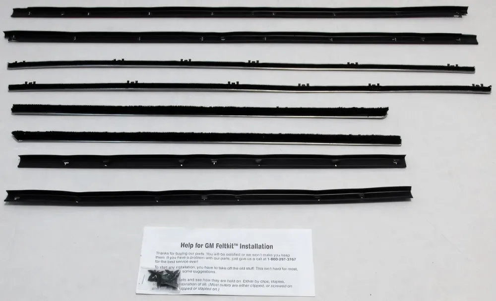 Kits vary by application and may include inner and outer window sweeps, outer sweeps only, or driver- or passenger-side components. Please review the product description carefully to confirm exactly which pieces are included for your specific vehicle.