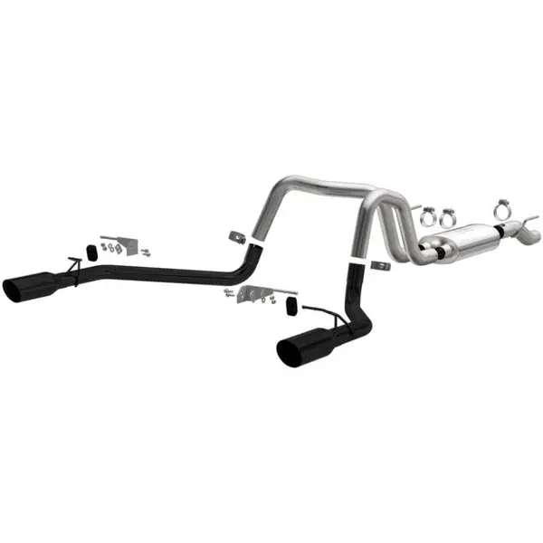 The MagnaFlow Street Series Cat-Back Performance Exhaust System #19562 is compatible with all 2021-2025 engine variants of the Ford F-150. Enjoy the newly aggressive sound of your truck’s motor, enhanced with MagnaFlow’s deep signature exhaust tone and dyno proven performance improvements, all while maintaining only moderate levels of interior noise. MagnaFlow #19562 features durable 100% stainless steel construction, a single straight-through muffler, 3” mandrel bent tubing and dual-split rear exit 4” tips with black powder-coated finish. Cutting-edge CNC precision robotic manufacturing is used to ensure that the exhaust kit’s direct-fit layout bolts on as intended for easy installation.