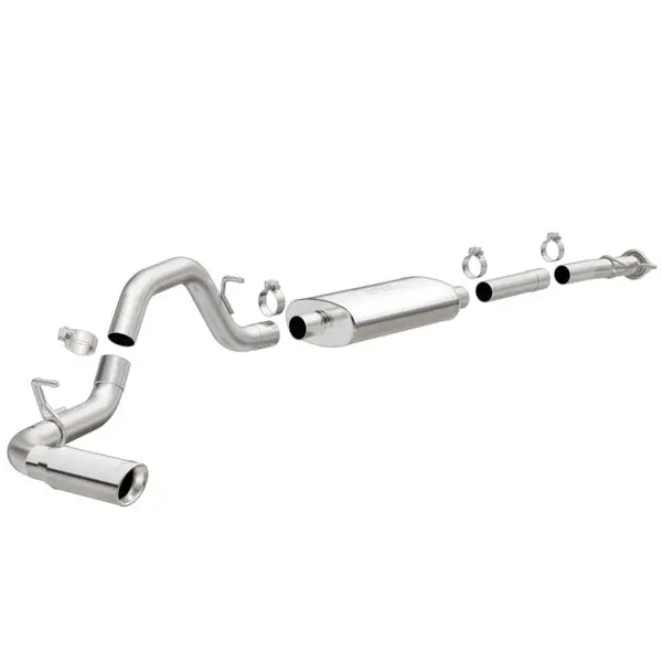 The MagnaFlow Street Series Cat-Back Performance Exhaust System 19018 brings out the personality of your Truck with our signature resonant, powerful engine tone and dyno-proven performance. Thanks to its fast-flowing, mandrel bent 3in. main piping and 1 Straight-Through mufflers ending in a Single Passenger Side Rear exit with 4in. Polished Welded-On Double Wall Angle Cut Rolled Edge tips, this Truck exhaust kit has the performance chops to match its sporty sound and appearance. Upgrade your ride to the next level with an exhaust that has the pipes to put other Truck’s to shame. With this system your vehicle will be producing Moderate exterior and Mild interior sound levels while leaving other cars and trucks feeling envious at every stoplight. Exhaust kit 19018 features a cat-back layout that replaces your ride’s stock exhaust components from near the catalytic converter on back. Extensive 3D scanning during development has resulted in a direct-fit design that you can easily install yourself. 19018 is produced using CNC precision robotic manufacturing techniques and is backed by MagnaFlow’s 1-year limited finish warranty and limited lifetime construction warranty.