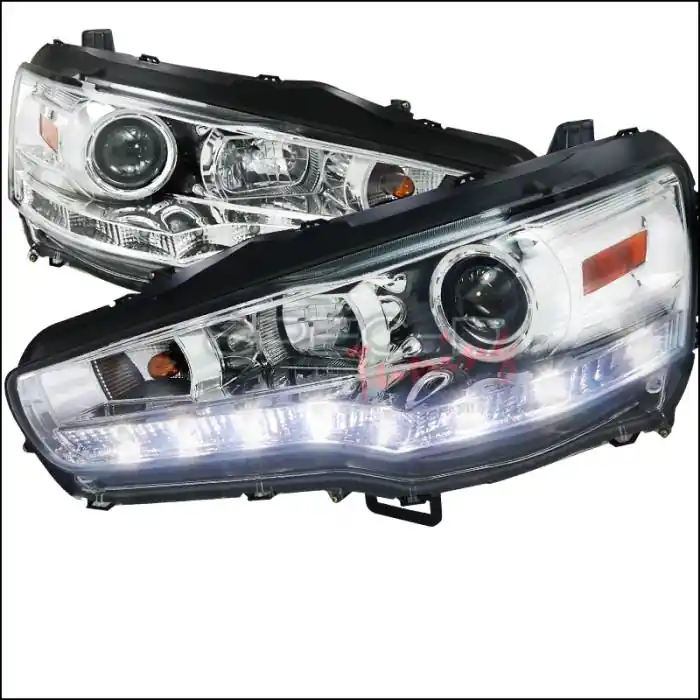 Mitsubishi Lancer Spec-D R8 Style Headlights – Chrome Housing – 2LHP-EVO08-8-TM Professional Grade