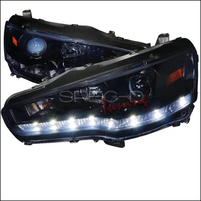 Mitsubishi Lancer Spec-D R8 Style Projector Headlight Glossy – Black Housing with Smoked Lens – 2LHP-EVO08G-8-TM One Day Deal