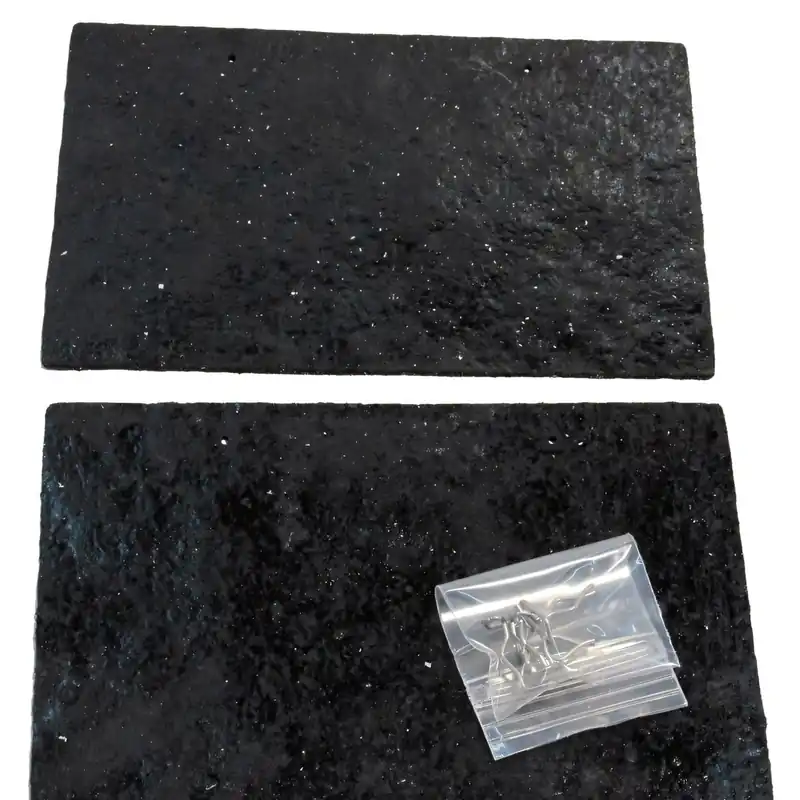 Splash shields are commonly made from rubber, molded plastic, fiberglass, or coated steel depending on the original factory design.