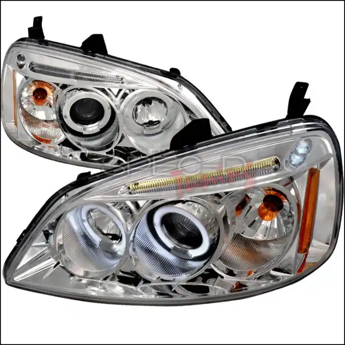 Premium Honda Civic Spec-D Halo LED Projector Headlights – Chrome – 2LHP-CV01-TM