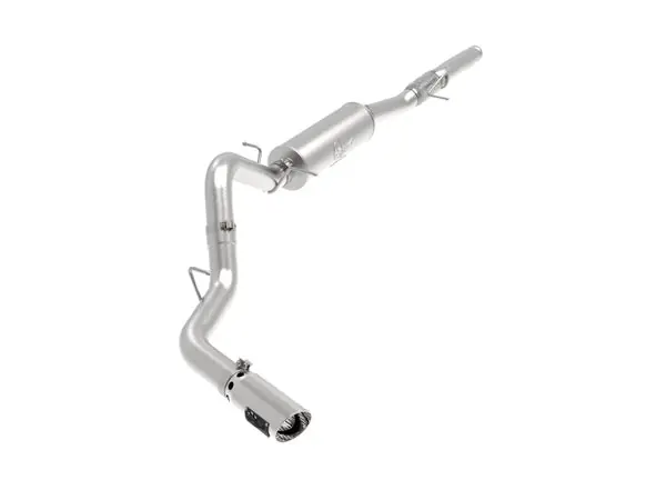 4″ 409 Stainless Steel Construction: This cat-back exhaust system is constructed of 4″ mandrel-bent 409 stainless steel tubing for maximum strength and durability.High-Flow 409 Stainless Steel Muffler: This system features a high-flow 409 stainless steel muffler, producing a deep sound. 5″ Diameter Polished Intercooled Exhaust Tip: Finishing off this exhaust system is a 5″ diameter polished 409 stainless steel intercooled clamp-on exhaust tip. The tip features an aFe POWER logo plate riveted on for a unique style.Installation: Utilizing factory style hangers this system is a direct bolt-on system, which requires no cutting or modifications for a hassle-free installation.Interlock Flex Pipe: This cat-back exhaust system uses a heavy duty flex pipe with an internal interlock liner for added strength and durability.Computer-Aided Design: Utilizing state-of-the-art computer-aided design technology, this exhaust system is designed for custom, high tolerance factory fitment.MIG-Welded: 100% MIG-Welded for race-proven strength and durability.This item fits: Crew Cab/Short Bed ( 69.3″ Box), 143.5″ Wheelbase, Crew Cab/Long Bed (78.8″ Box), 143.5″ Wheelbase, Extended Cab/Long Bed (78.8″ Box) 153″ WheelbaseEmissions Disclaimer: This product does not require a CARB EO#.aFe POWER exhaust systems are engineered and manufactured in our Corona, California facility.