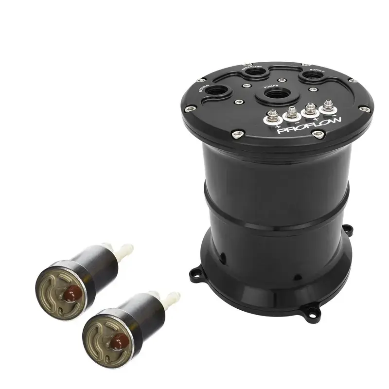 Secure Checkout Proflow Surge Tank Kit With Dual Walbro 460 LPH Fuel Pumps EFI 2.5L Billet Aluminium Black Anodised