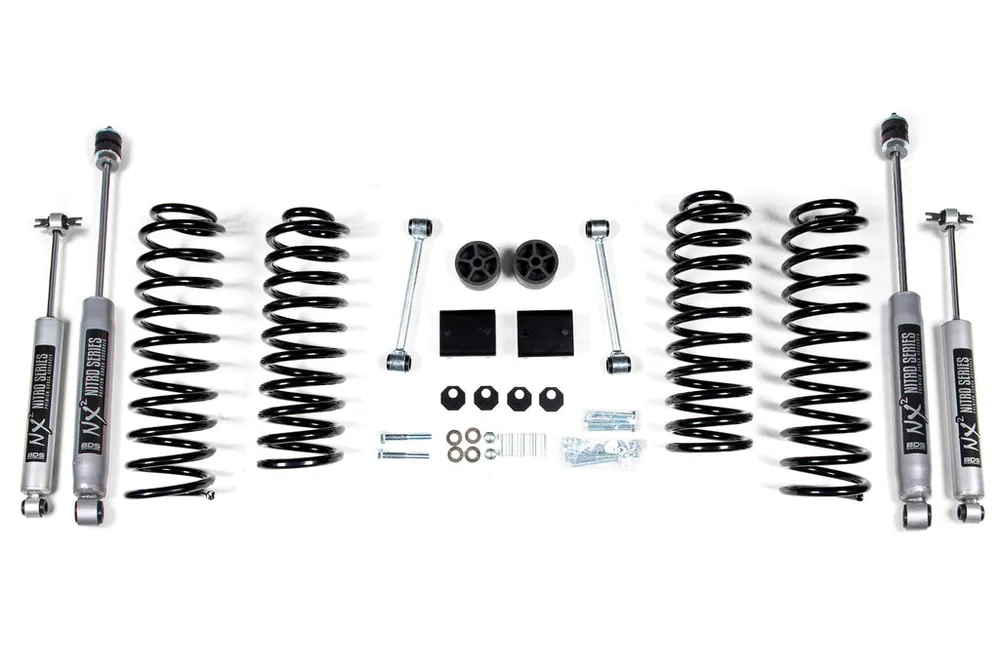 Improve the ride and style of your 2007-2011 Jeep Wrangler JK 4 Door with this 2-inch coil spring lift kit from BDS Suspension. Designed to improve stance this kit includes everything necessary to set your truck up right with clearance for up to 33″ tires at an affordable price.