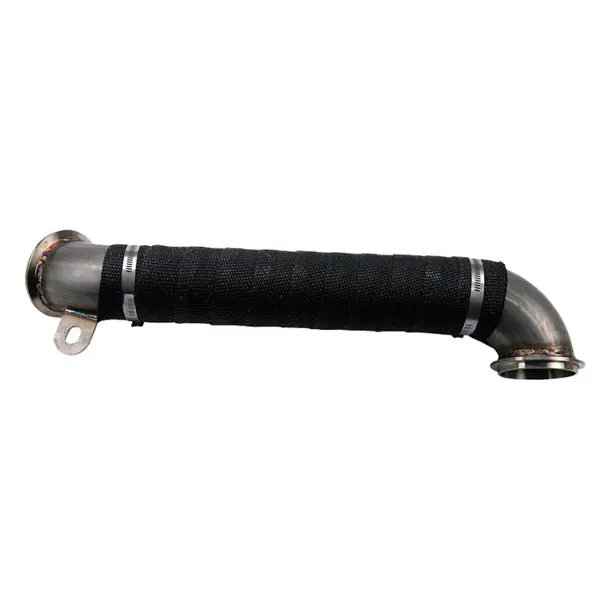 Replace the restrictive crushed factory turbo down pipe / exhaust front pipe on the 6.6L Duramax Diesel V8 found in the 2004.5 – 2010 Chevrolet Silverado / GMC Sierra 2500 / 3500 HD truck with this high flow, heat wrapped, full 3″ Stainless steel down pipe. For use with OEM or factory style drop in turbocharger. No tuning required. – – Replaces the following GM Part Numbers: 98050150